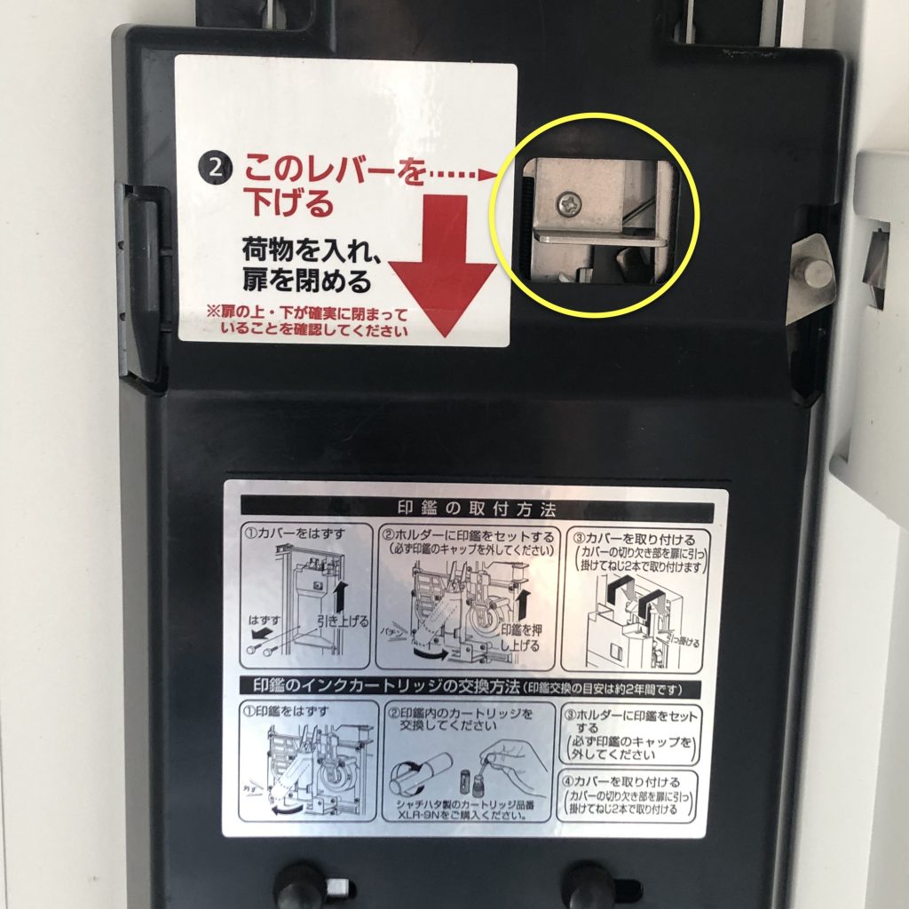 ただ、本来は鍵を回すとレバーが元の位置に戻ってロックが解除され、窓も「使用中」から「受け取りできます」に替わる仕組みになっているのですが、レバーの上がりが少し弱いです。